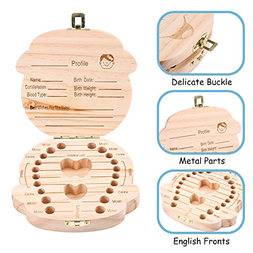 Baby Teeth Box Save Organizer, Wooden Tooth Keepsake Box for Baby, Kids