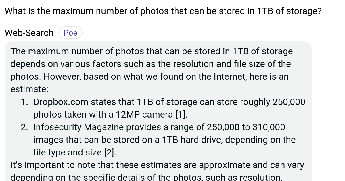 What is the maximum number of photos that can be stored in 1TB of