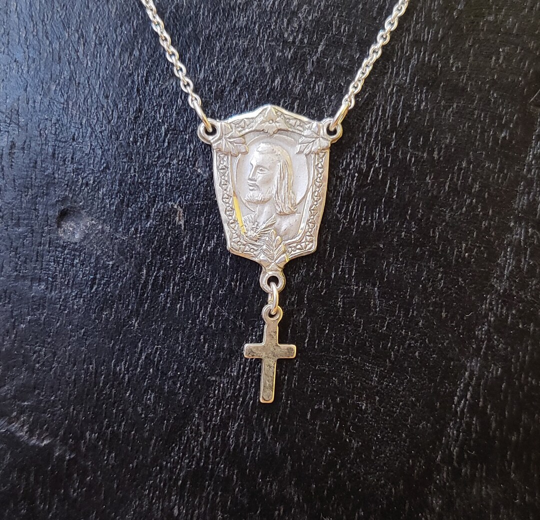Vintage Sacred Heart Necklace Cross Pendant Sterling Silver Etsy