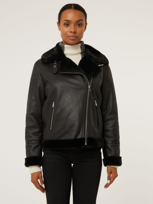 Black Faux Fur Lined Aviator Jacket Women at ASDA