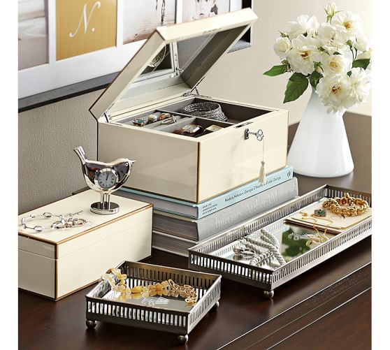 Ultimate Mirrored Jewelry Box Pottery Barn Pottery Barn Jewelry Box Check everything off your list for your new home away from home. tuck your trinkets in a spot as sophisticated as the pieces it protects. construction made of mdf, iron, glass and metal. shop jewelry boxes from pottery barn. shop for jewelry boxes, organizers and holders in various styles and designs at pottery barn. Interior is. Pottery Barn Jewelry Box.