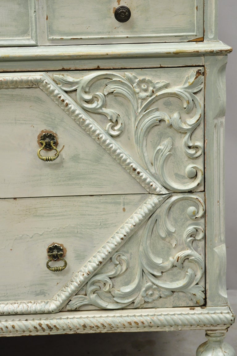 Depression Renaissance Top Blue White Distress Painted Dresser