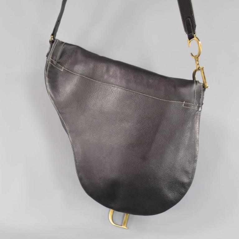 CHRISTIAN DIOR Black Leather Large Crossbody Saddle Bag at 1stDibs