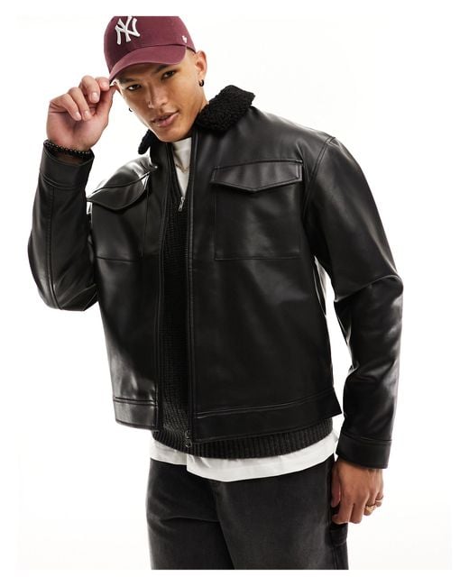 ASOS Oversized Faux Leather Harrington Jacket in Black for Men Lyst