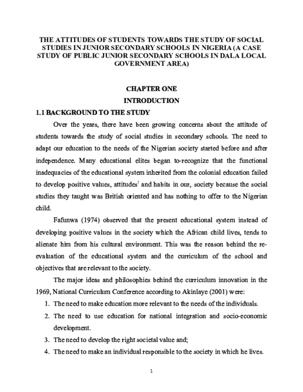 (DOC) THE ATTITUDES OF STUDENTS TOWARDS THE STUDY OF SOCIAL STUDIES IN