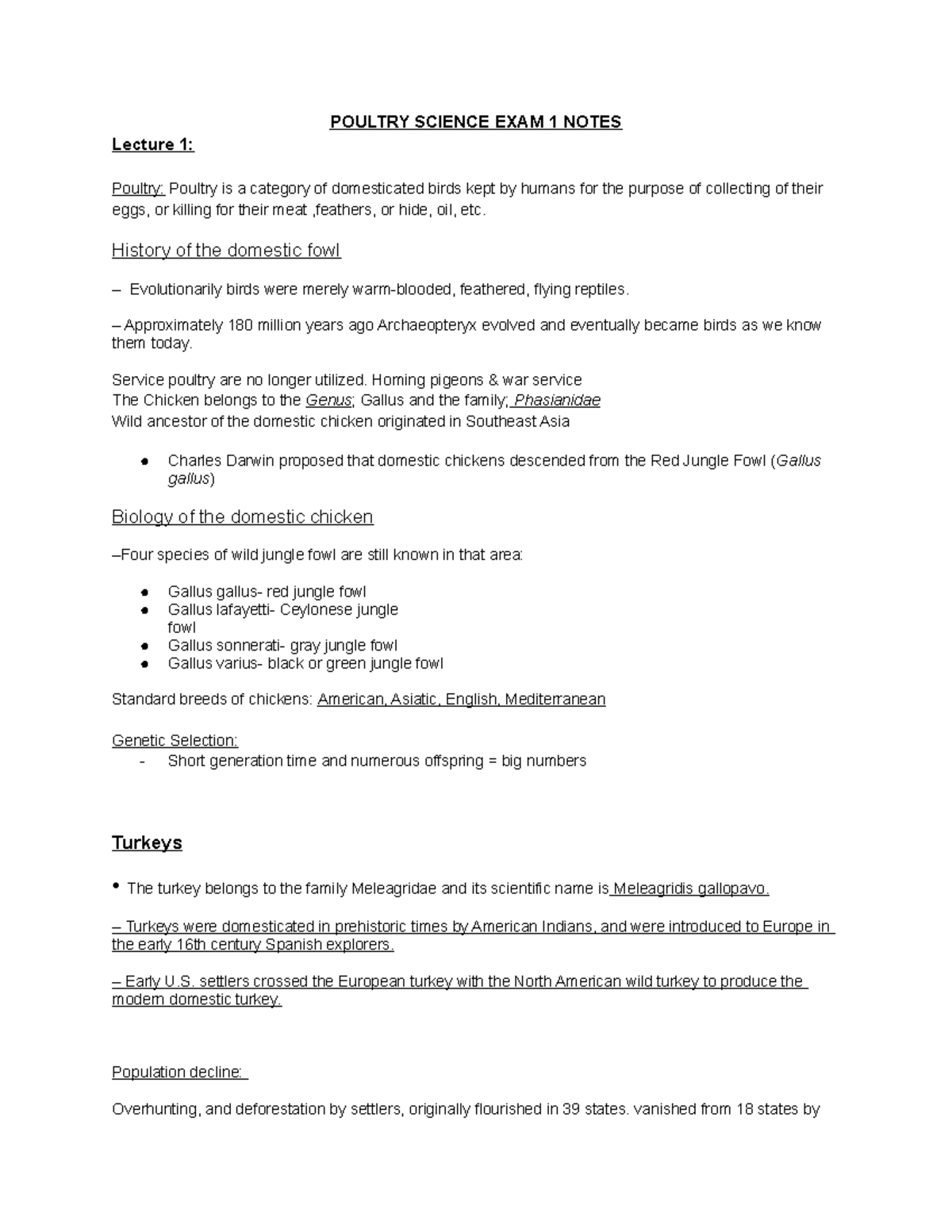 Poultry Science EXAM 1 Notes POULTRY SCIENCE EXAM 1 NOTES Lecture 1