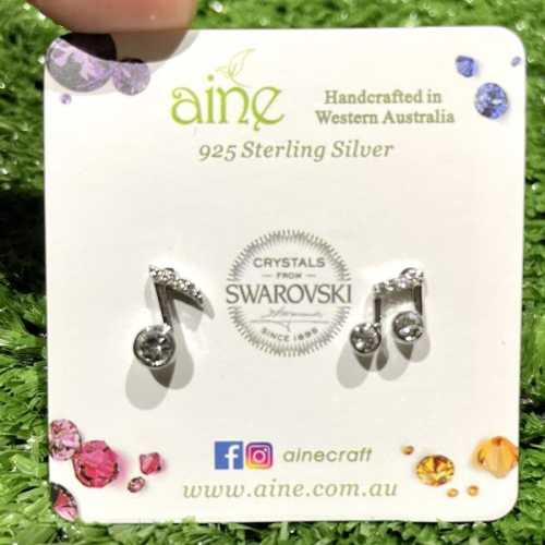 925 Sterling Silver Swarovski Crystal Stud Earrings Music Notes Ai Ne 925 Swarovski Earrings