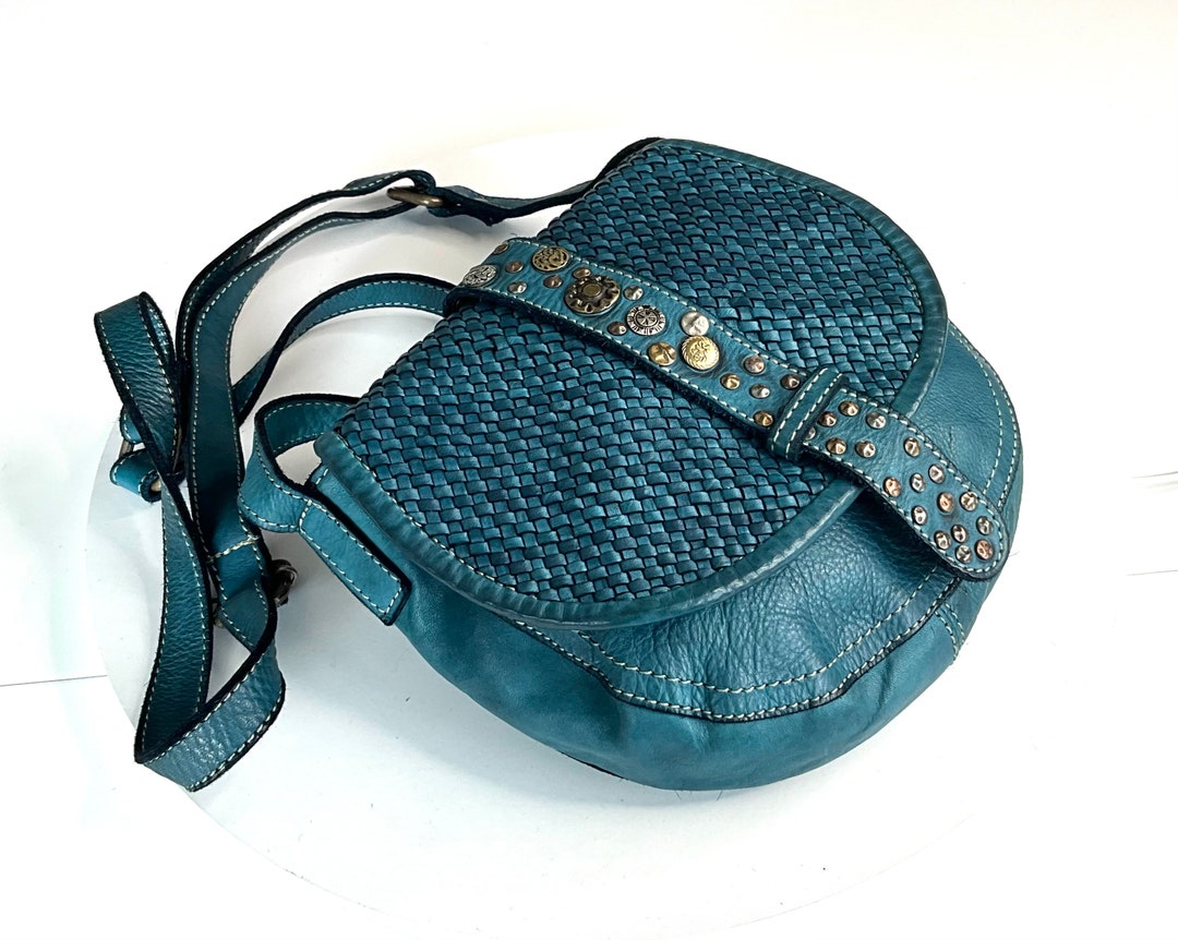 Small Teal Blue Woven Leather Crossbody Bag Soft Handmade Etsy