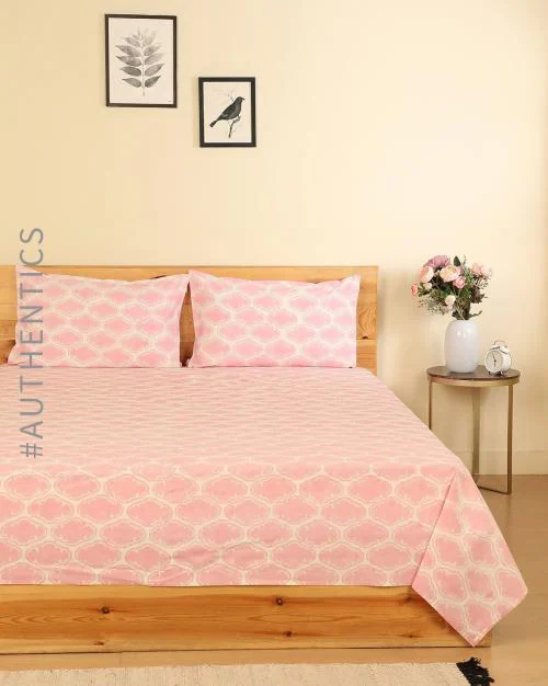 Buy Handblock Print Cotton Double Bedsheet with Pillow Covers Online at