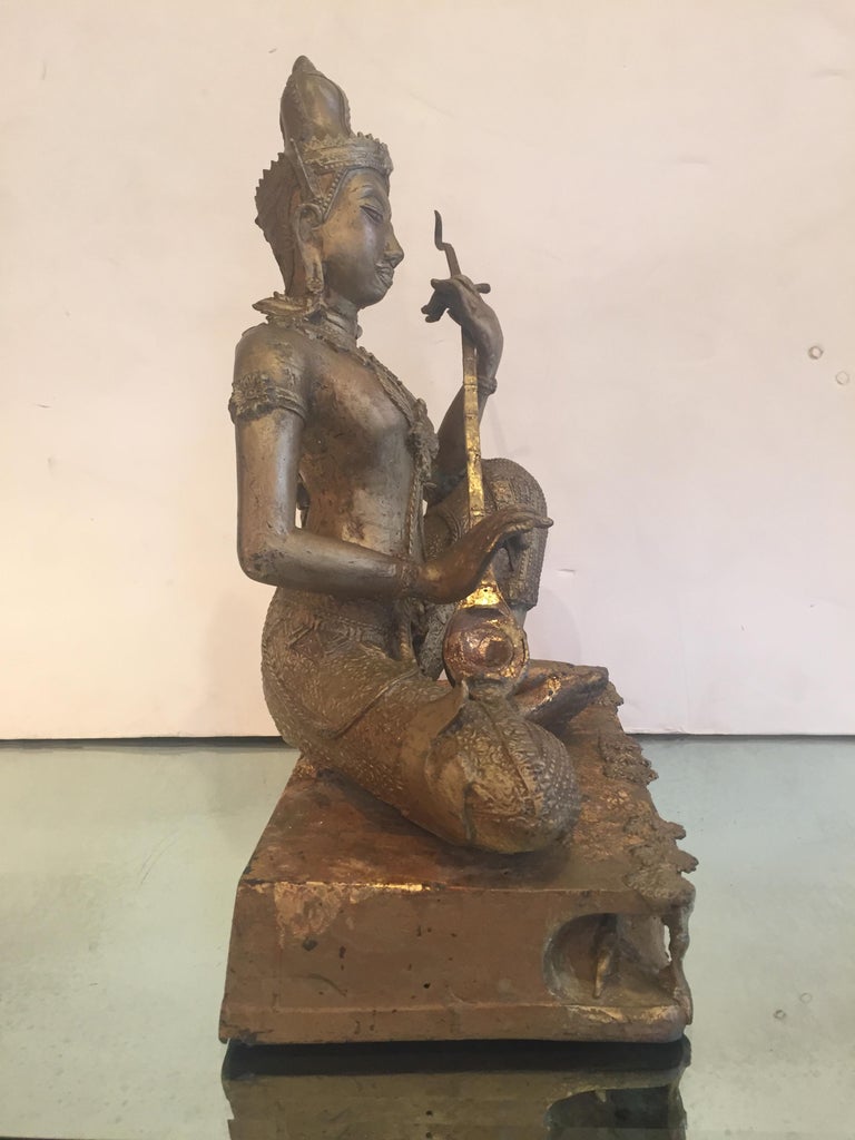 Ethereal Gilt Bronze Thai Deity Sculpture For Sale at 1stDibs