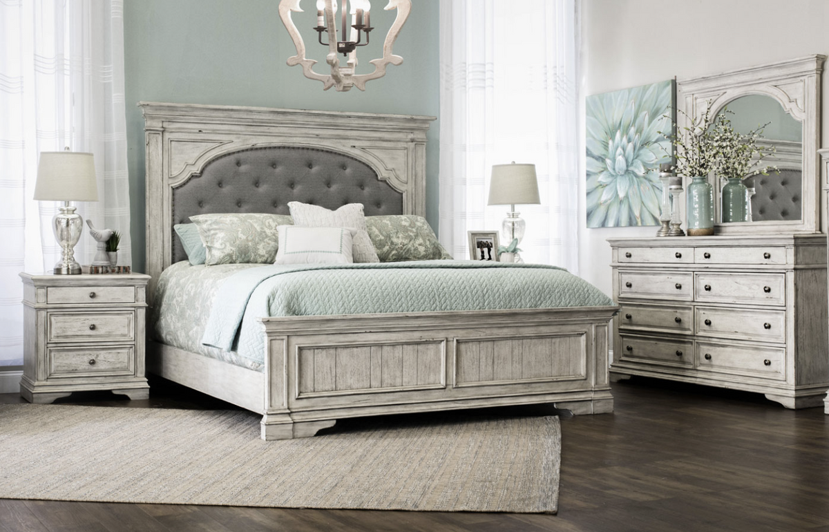 Steve Silver Highland Park 4 pc Queen Panel Bedroom Set in Cathedral W