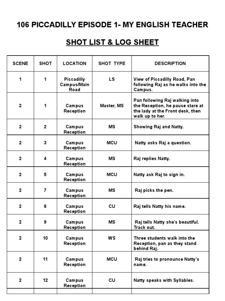 Film Shot List PDF