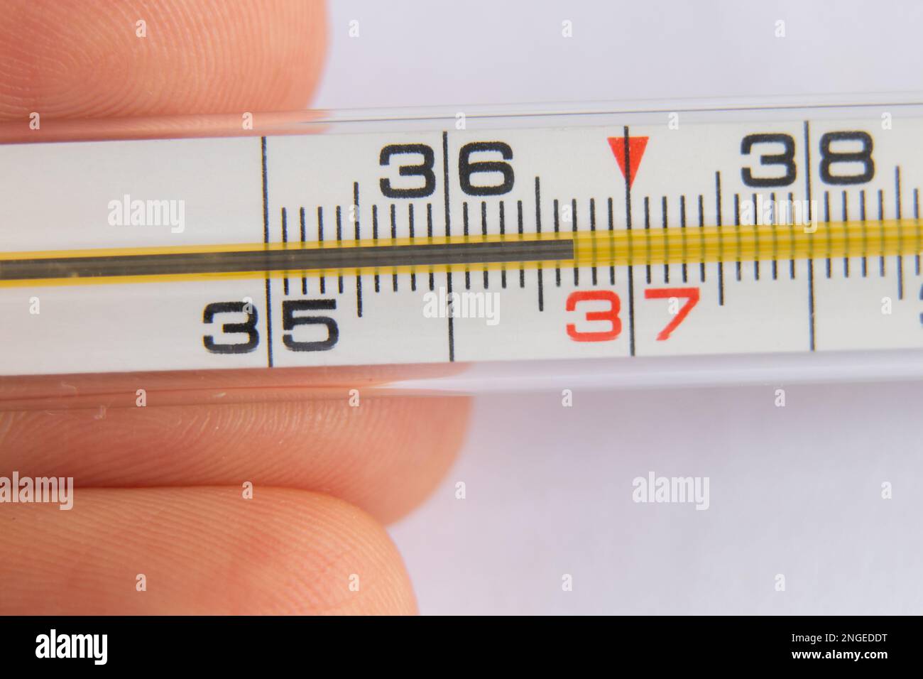 glass alcohol medical thermometer on an isolated background Stock Photo