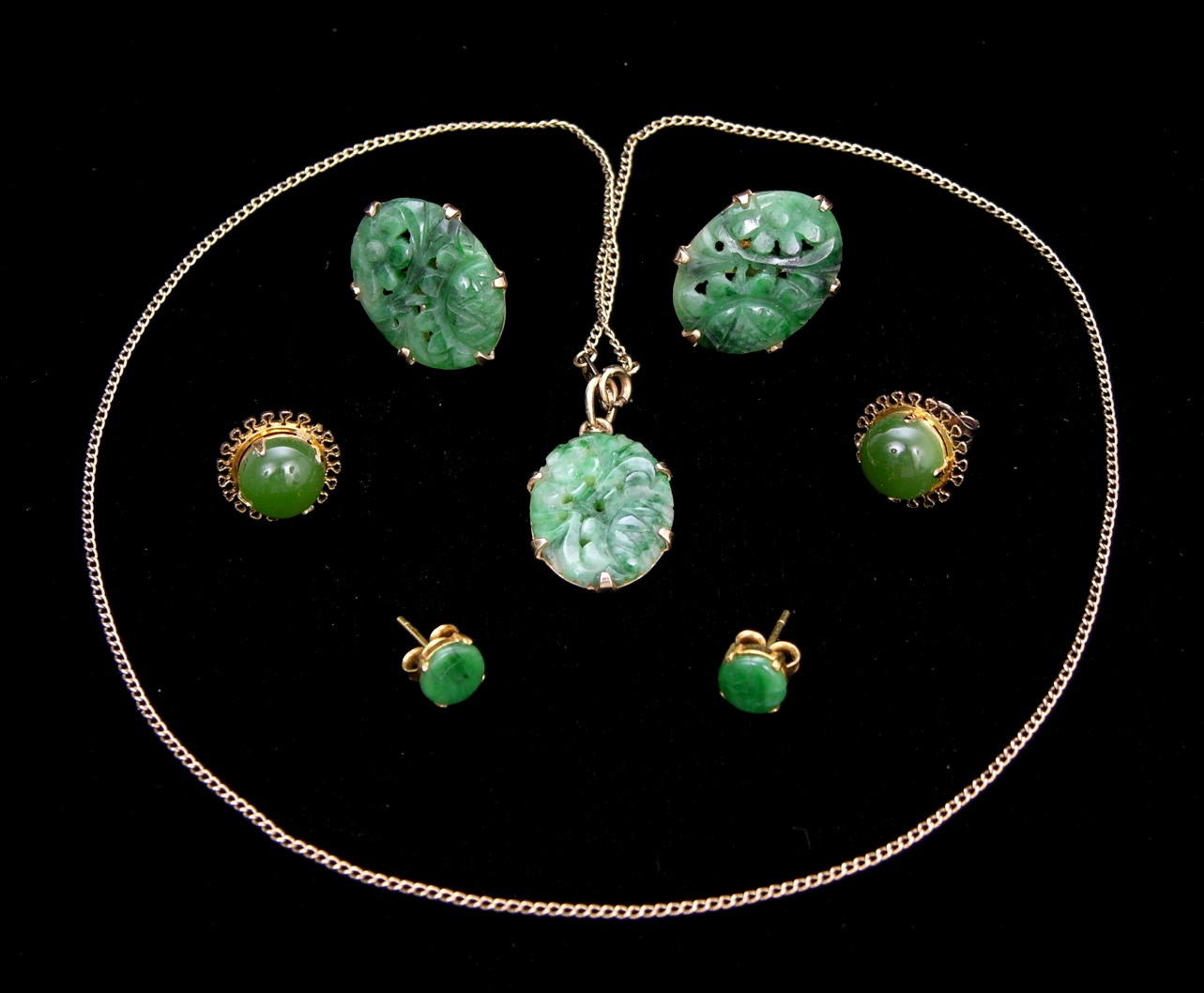 A lot of Jade Jewelry Set in Yellow Gold, 09.15.06, Sold 241.5