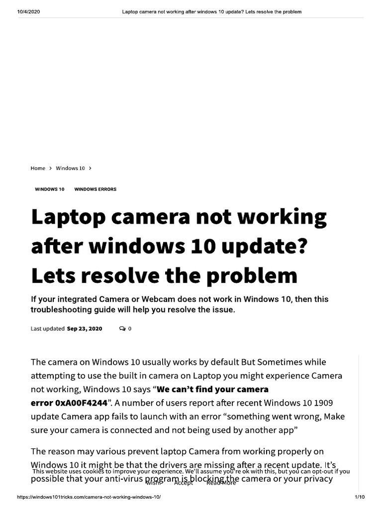 Laptop Camera Not Working After Windows 10 Update Lets Resolve The