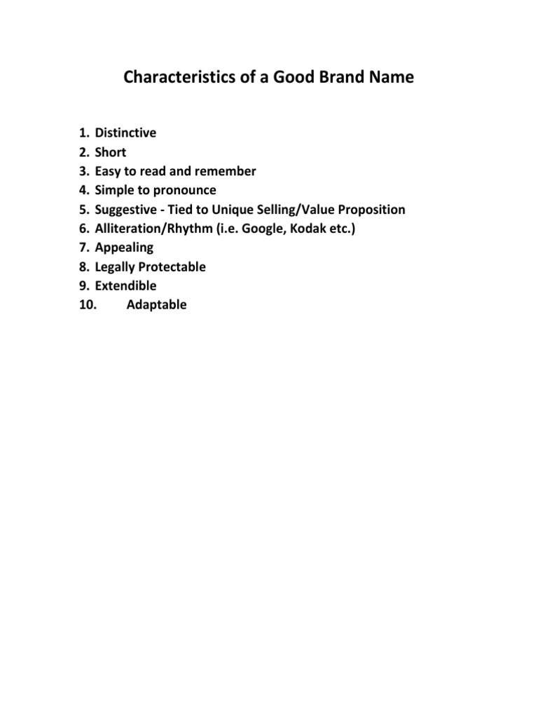 Characteristics of A Good Brand Name PDF