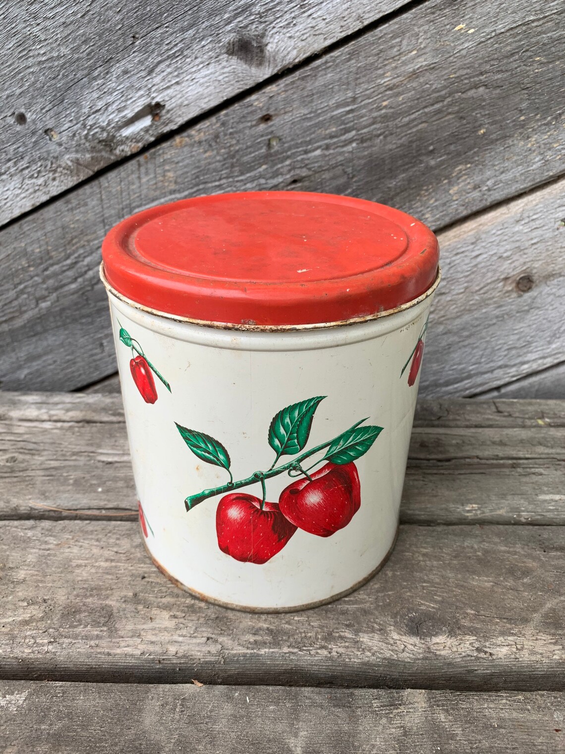 Apple Tin Canister Set White Red Metal Vintage Kitsch Kitschy Etsy UK