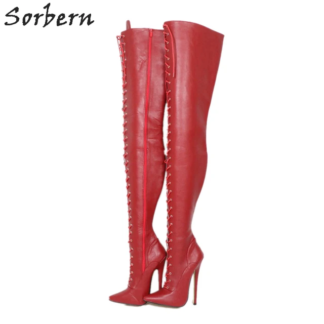 Sorbern Matte Wine Red Custom 85Cm Long Boots For Women Crotch Thigh