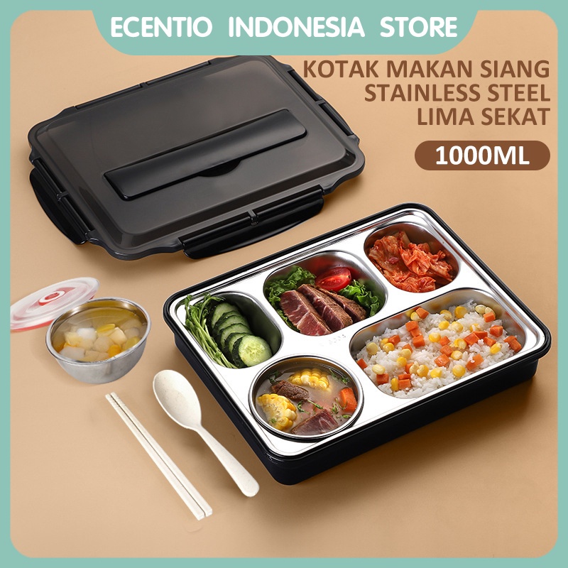 Jual ecentio lunch box 304 stainless steel /Kotak Makan 5 Sekat Tahan
