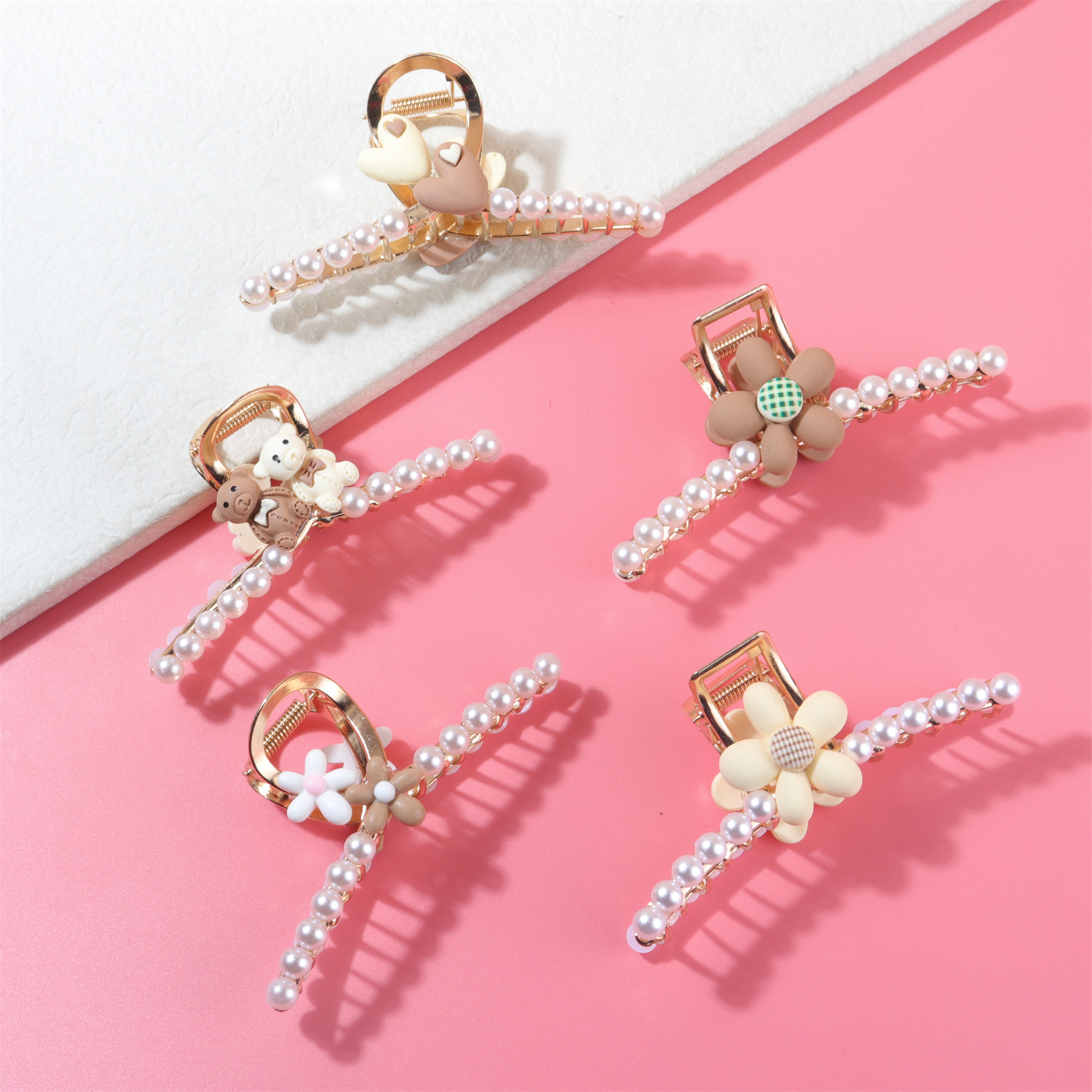 Trendy Pearl Heart Flower Hair Claws Clear Hair Clips Temu