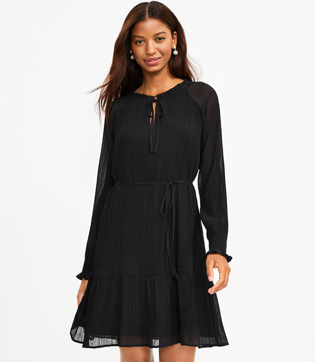 Pleated Tie Neck Dress
