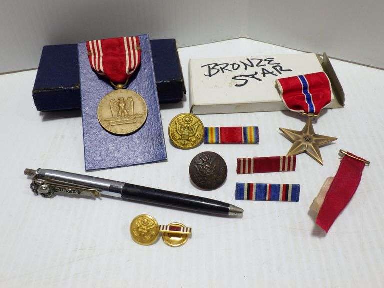 Bronze star, Good Conduct medal, (3) Buttons, a USMC ink pen, and more