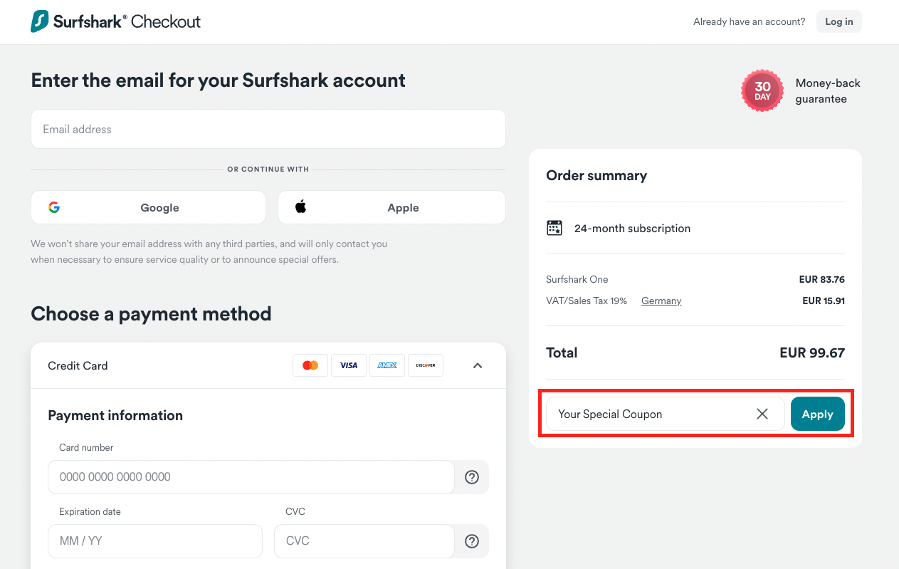 How to use a coupon code Surfshark Customer Support