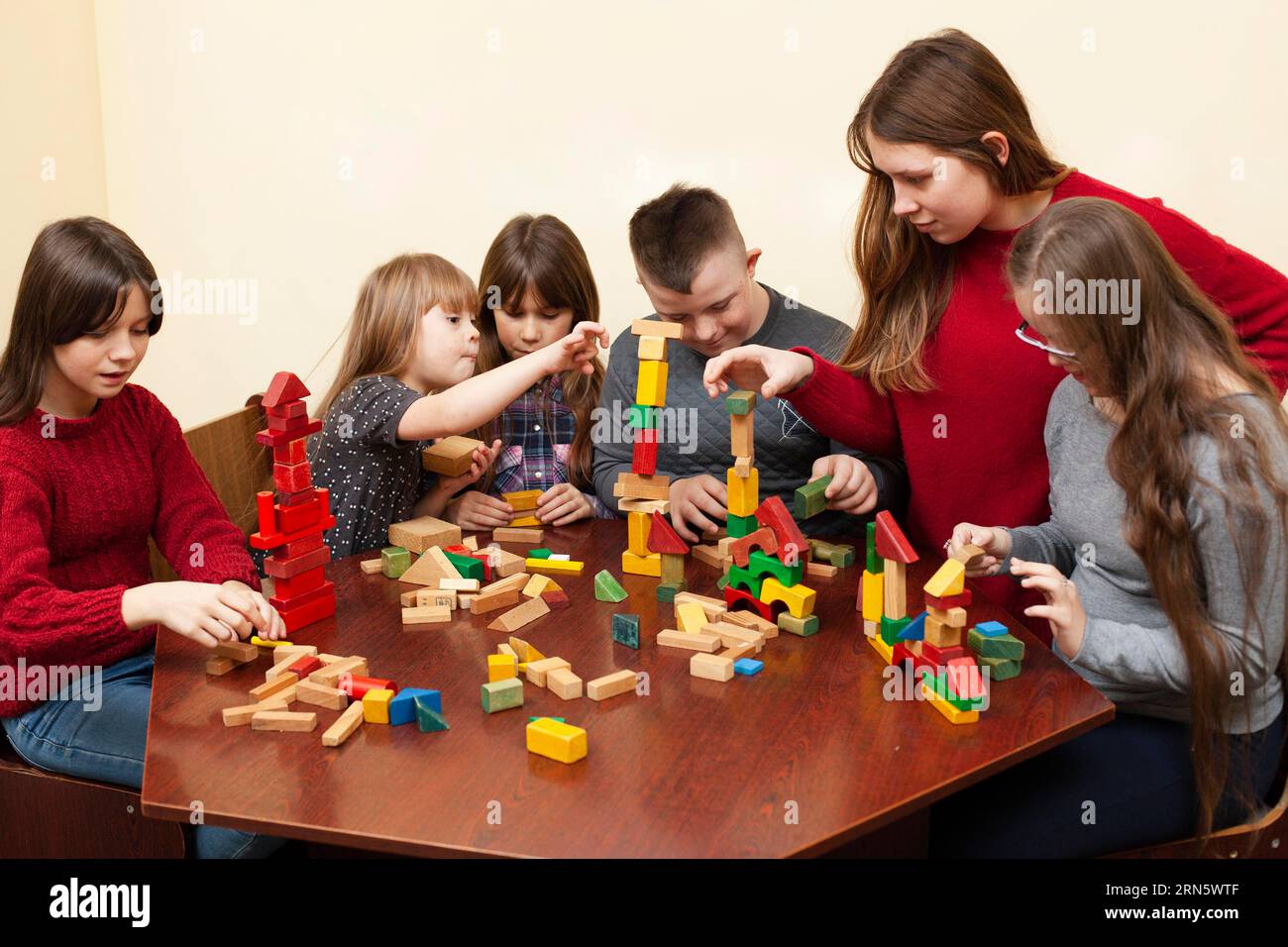 Children with down syndrome playing with toys Stock Photo Alamy