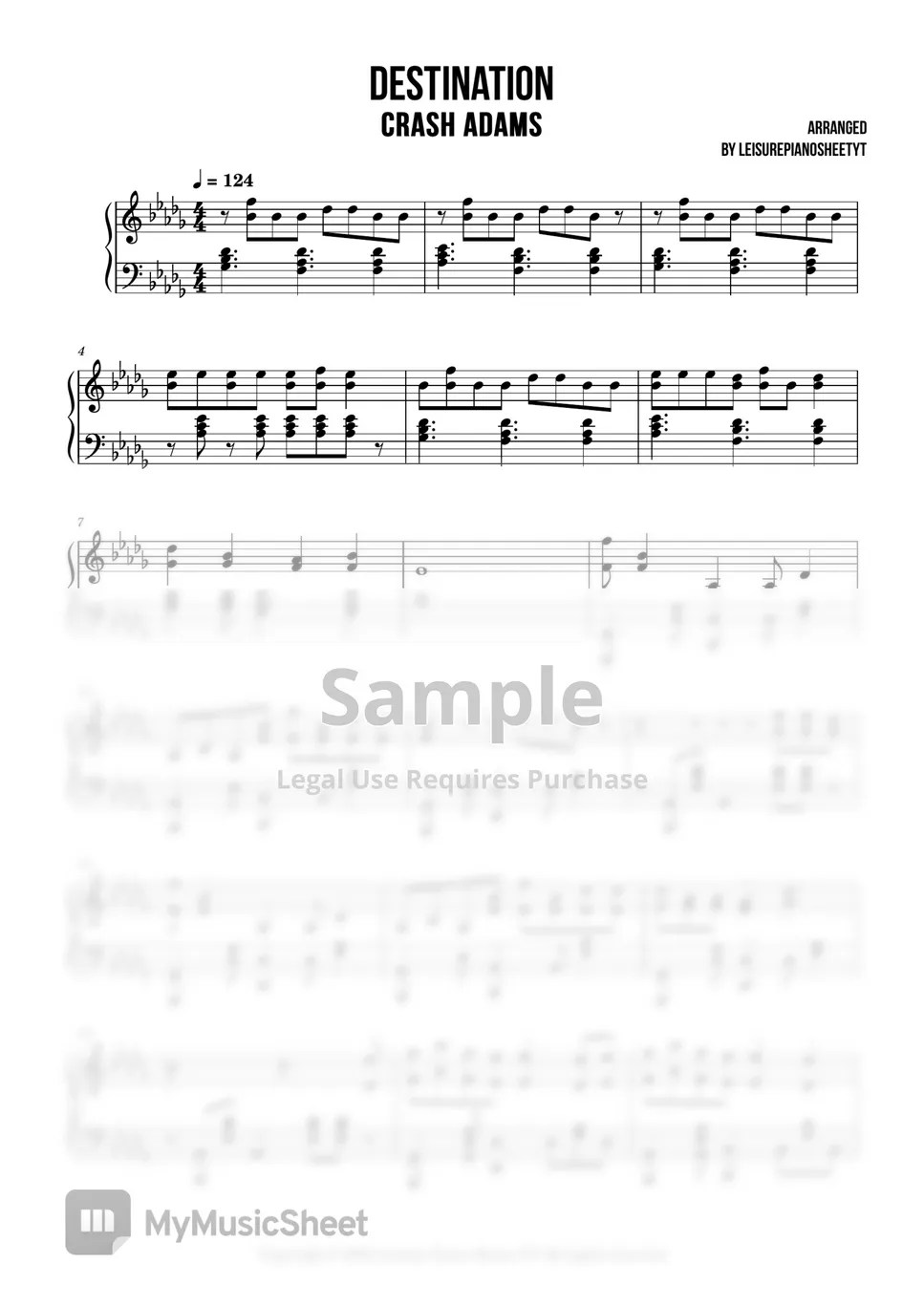 Crash Adams Destination Partitura by Leisure Piano Sheets YT