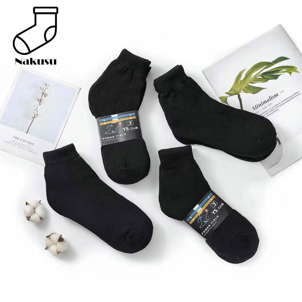 Nakusu 12Pairs Y.s Club Men's Plain Black Cotton Ankle Socks High
