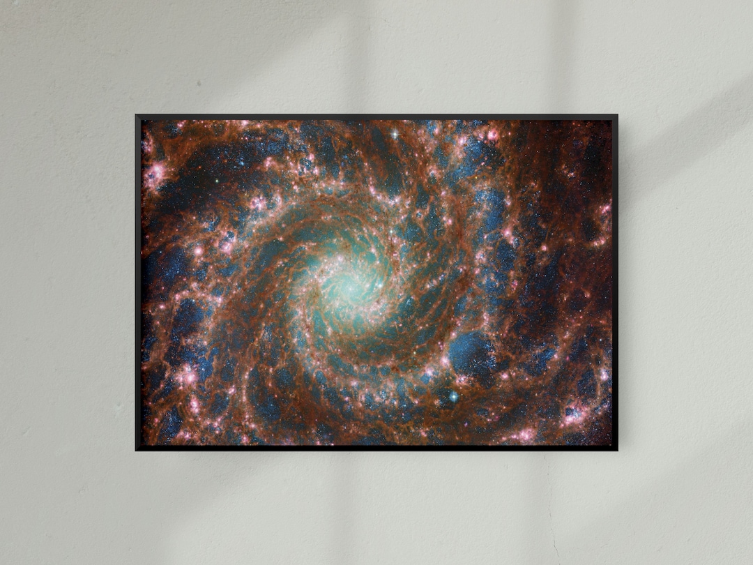 NASA JWST James b Space Telescope Phantom Galaxy M74 Etsy James b Telescope Images M74 This image from the nasa/esa/csa james. This image from the nasa/esa/csa james webb space telescope shows the heart of m74, otherwise known as the phantom galaxy. Scientists combine data from telescopes operating across the electromagnetic spectrum to truly understand astronomical objects. The james webb space telescope (jwst) has snapped a dramatic new image of a spiral galaxy that looks like. James b Telescope Images M74.