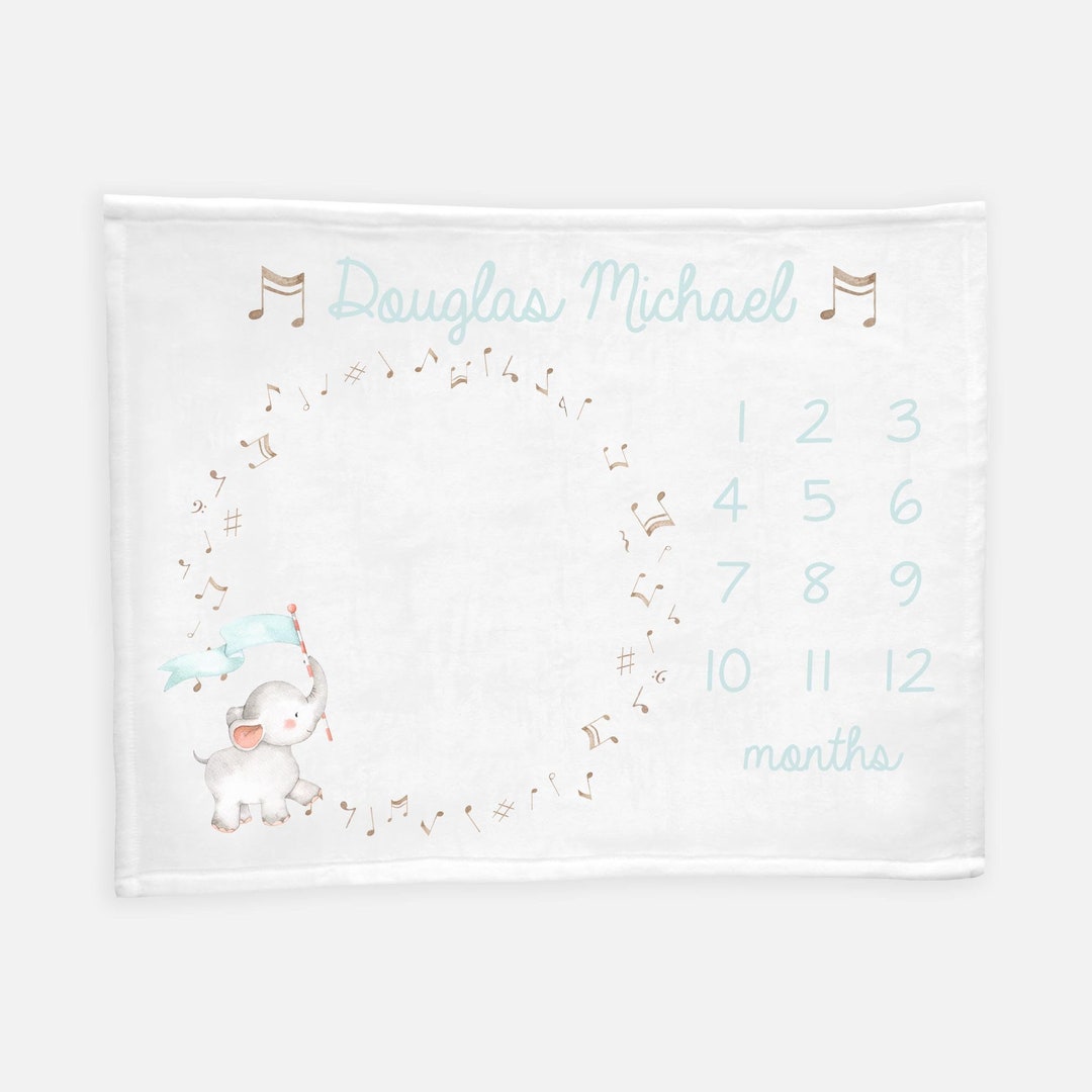 Music Boy Milestone Blanket, Milestone Blanket Boy, Boy Elephant Baby