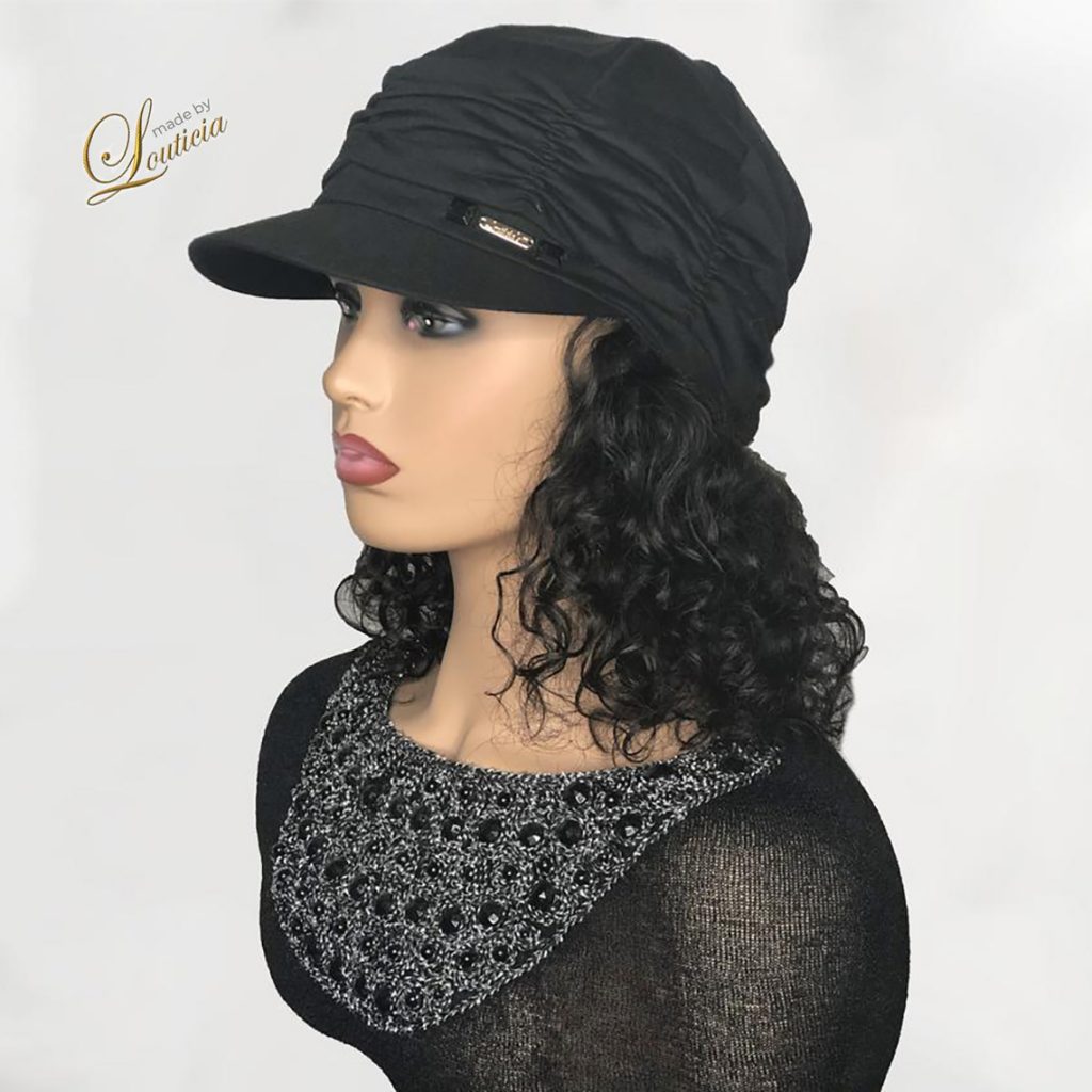 Pretty Chemo Caps For Hair Loss with 10 inch Curly Black Hair Cranial