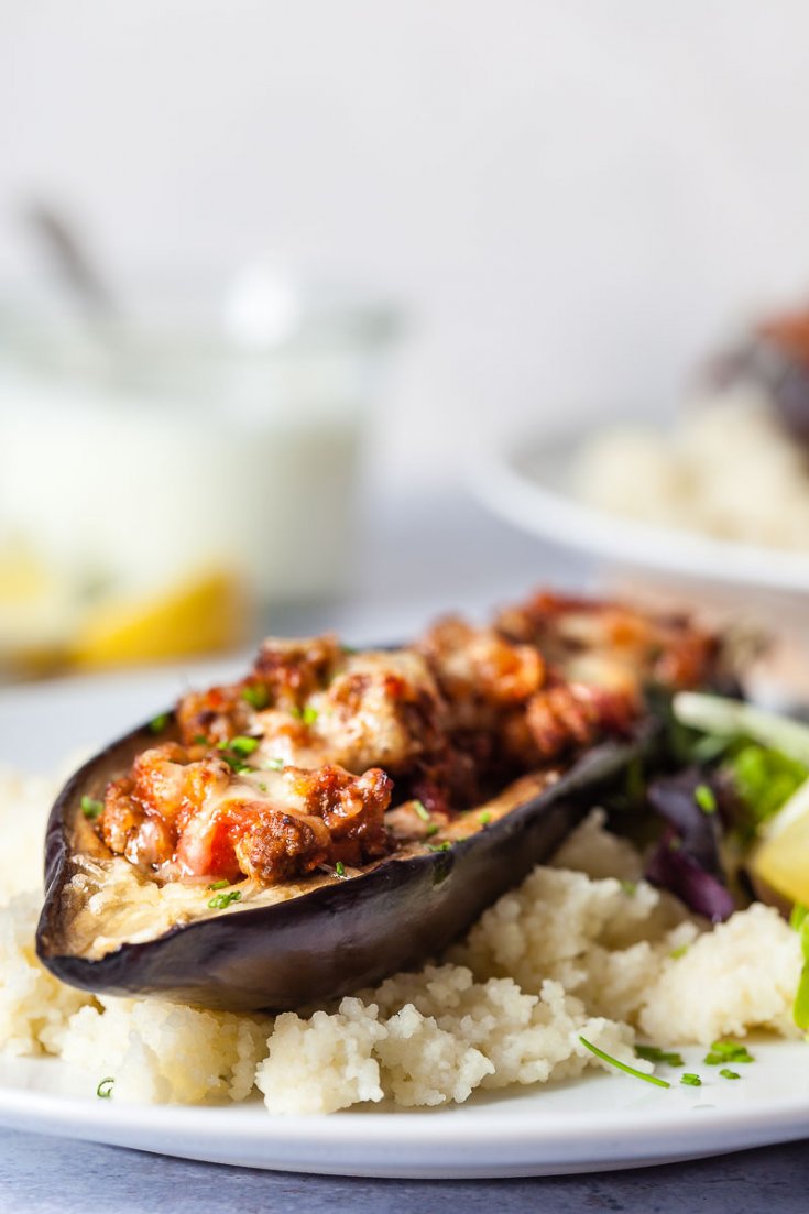 Roasted Stuffed Eggplants {LowCarb, GlutenFree} Vibrant plate