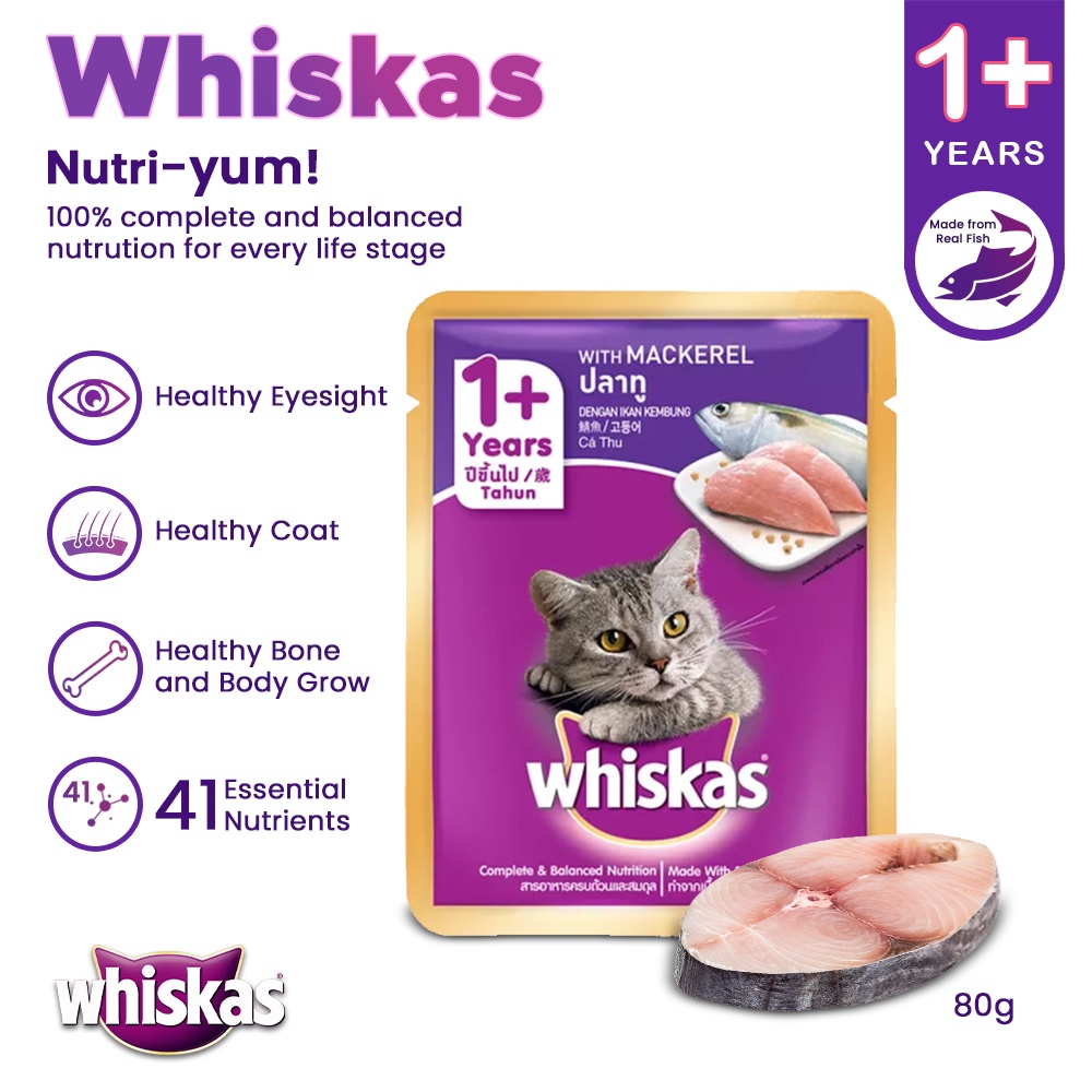 Magz Whiskas Adult Wet Cat Food Mackerel Flavor for 1+ Cats 80g