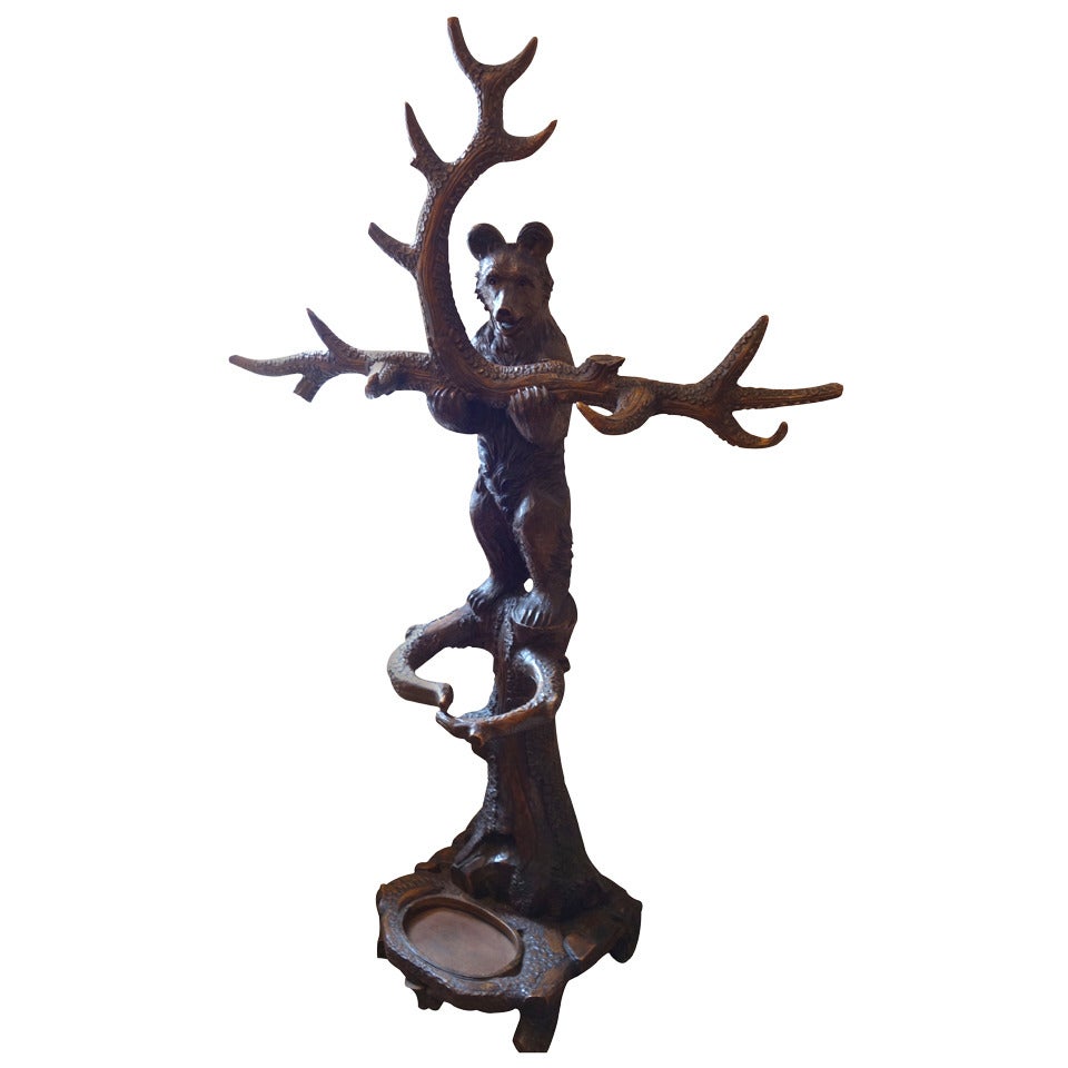 Unusual 19th C. Black Forest Hall Tree at 1stdibs Black Forest Hall Tree Mother bear with two of her cubs climbing the tree. check out our black hall tree selection for the very best in unique or custom, handmade pieces from our entryway & mudroom. prices for a black forest hall tree start at $850 and top out at $65,000 with the average selling for $17,000. late 19th century carved. Black Forest Hall Tree.