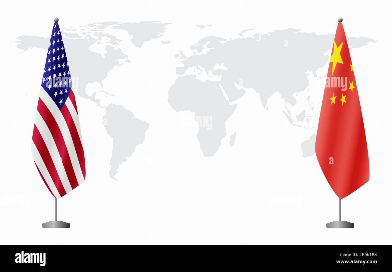 United States and China flags for official meeting against background