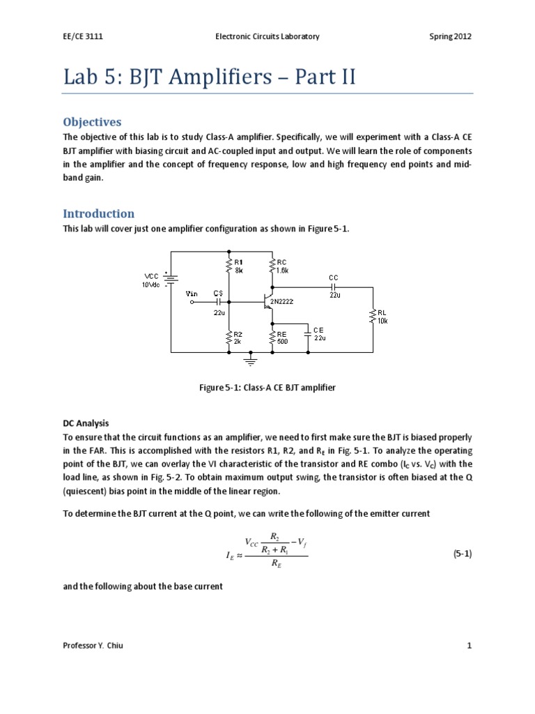 CLASS A AMP LAB Amplifier Bipolar Junction Transistor Transistor Amplifier Lab This lab will equip you with the knowledge and understanding to explain the behavior of bjt in two of the three amplifier configurations. We will explore the frequency response of some simple bjt. We spend a bit of time studying how to properly bias the transistor and how to calculate a transistor amplifier’s gain and input and output impedances. Experiment. Transistor Amplifier Lab.