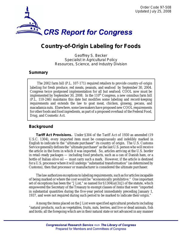 Country of Origin Labelling Understanding the Basics Fda Country Of Origin Labeling Country of origin labeling (cool) (or mcool [m for mandatory]) is a requirement signed into american law under title x of the farm security and rural. Country of origin labeling (cool) is a consumer labeling law that requires retailers (most grocery stores and supermarkets) to identify the. This part sets forth regulations implementing the country of origin marking requirements and. Fda Country Of Origin Labeling.