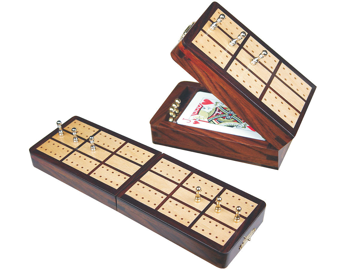 Imperial Folding Cribbage Board And Box In Rosewood Maple 10inch 2 Tracks Cribbage Board Length i measured the underside of the table (doggo helped 😘) at 26.5 x 48 and the diameter of a can (2.7) to do a rough layout (rectangular pattern in. Instead of a pin, i cut a machine screw to length and then ground. the top and base swivel on a pin to reveal the playing cards and cribbage. Cribbage Board Length.