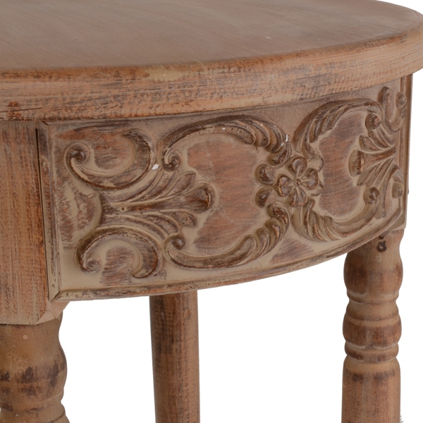 Natural Carved Round End Table Kirklands