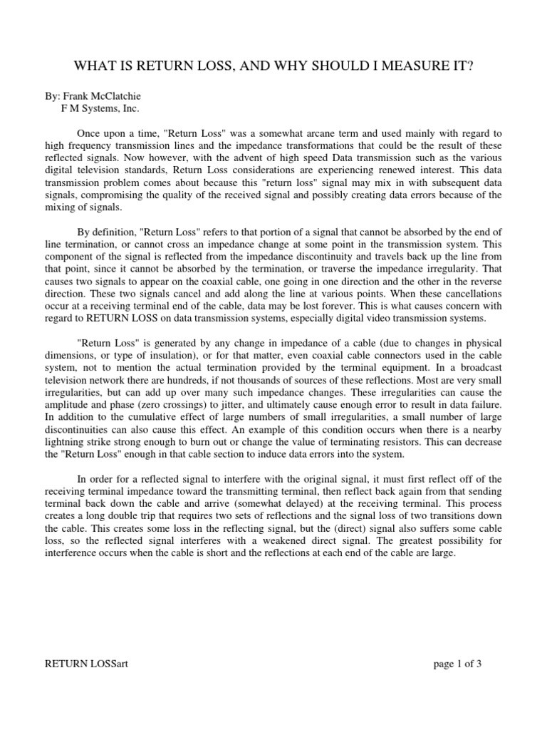 What Is Return Loss and Why Should We Measure It? PDF Coaxial Cable Electrical Connector