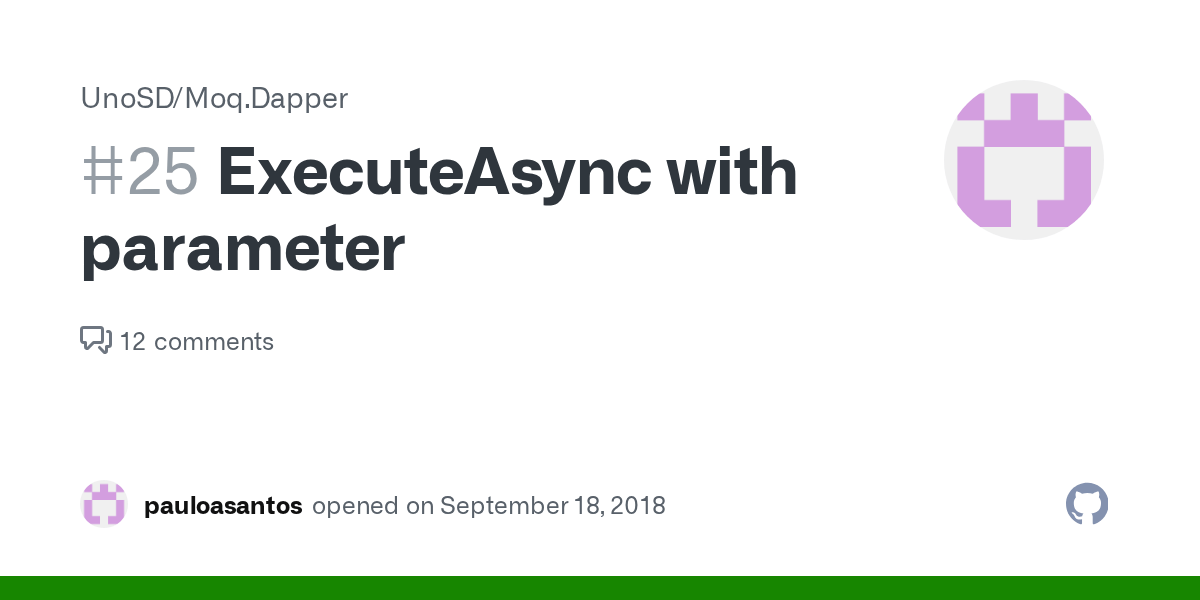 ExecuteAsync with parameter · Issue 25 · UnoSD/Moq.Dapper · GitHub