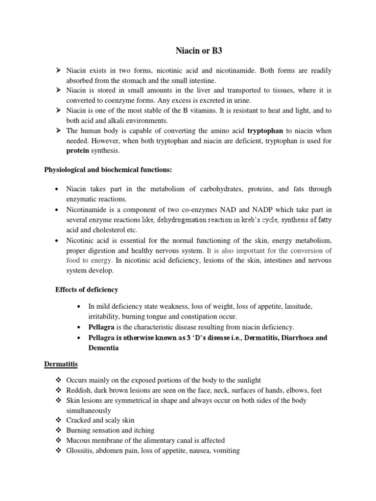 An InDepth Look at Niacin Physiological Functions, Deficiency