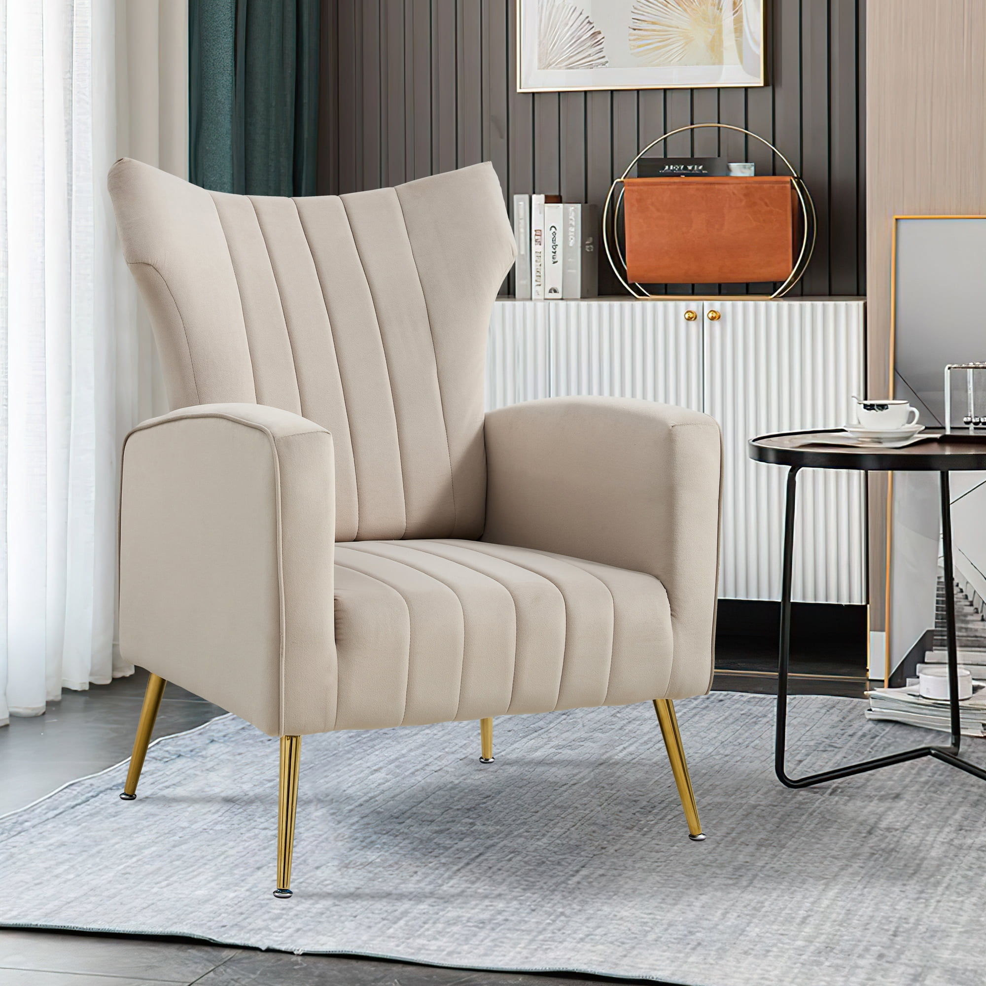 Velvet Accent Chair,Wingback Arm Chair with Gold Legs, Upholstered Single Sofa for Living Room