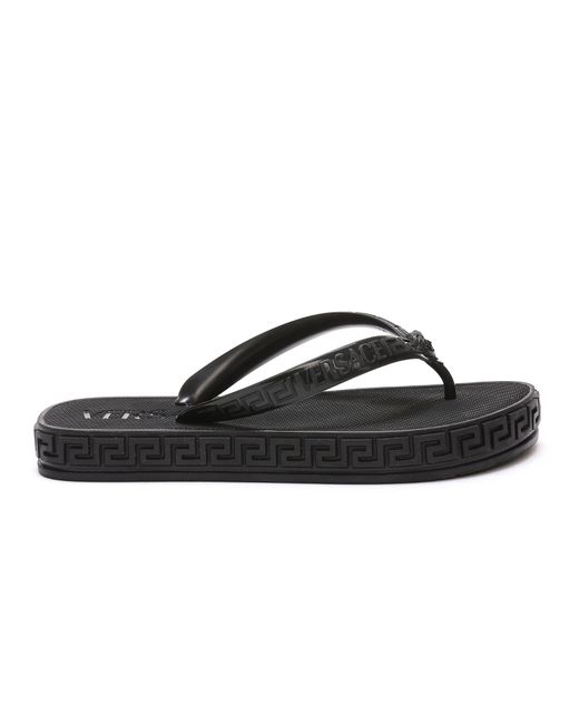 Versace Rubber Greca Logo Flip Flop Sandals in Black Lyst UK