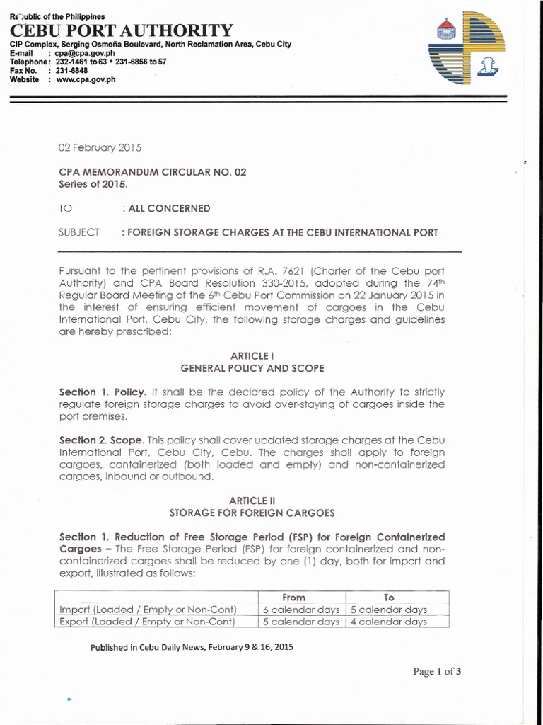 Foreign Storage Charges at Cebu International Port PDF Cargo