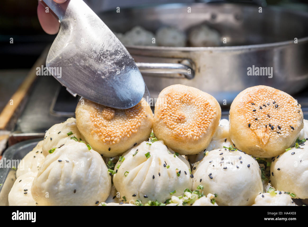 Shanghaistyle panfried pork buns, Shanghai, China Stock Photo Alamy Pork Buns Shanghai Style The recipe we are looking at today is a particularly famous snack in shanghai. Each city has some representative snacks. The cousin to the more popular xiao long bao (soup dumplings), sheng jian bao hail from shanghai, where they’re typically enjoyed as breakfast, lunch, and street food. The steamed version is called xiao long bao. This traditional dish, packed with.. Pork Buns Shanghai Style.