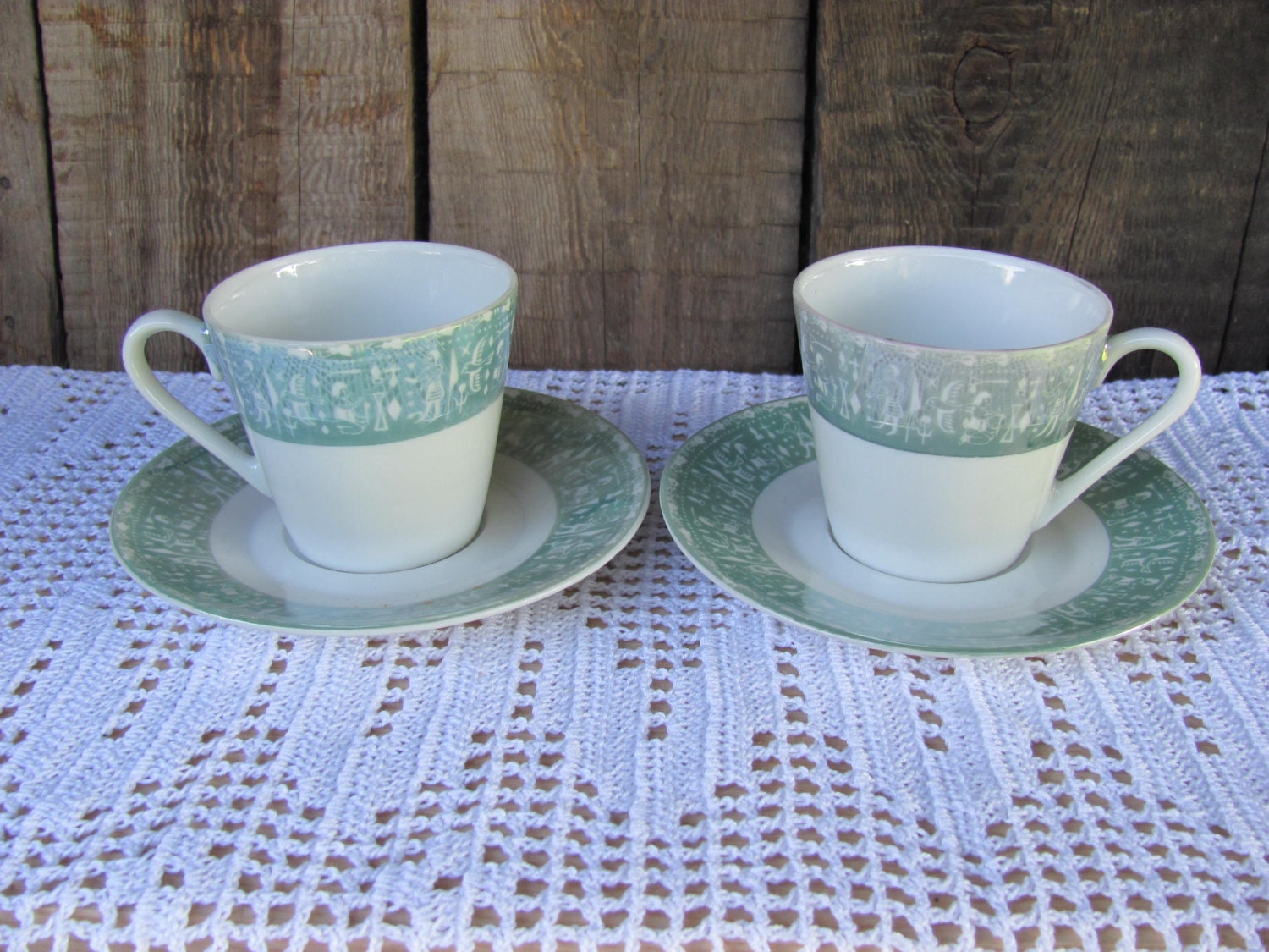 Set of 2 Small Coffee Cups with Saucers Vintage Espresso