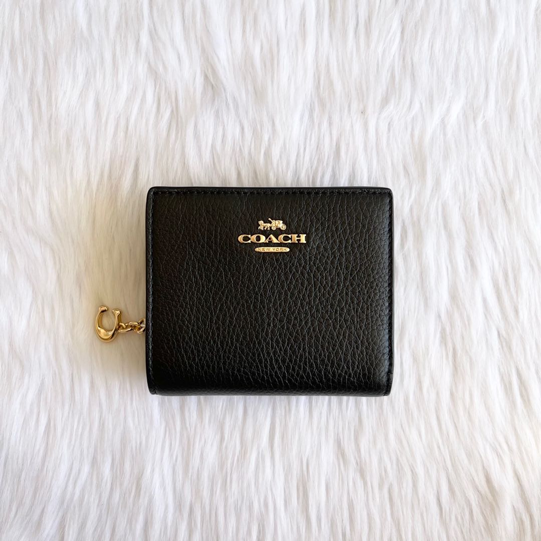 Coach Snap Wallet in Pebbled Leather Black, Women's Fashion, Bags